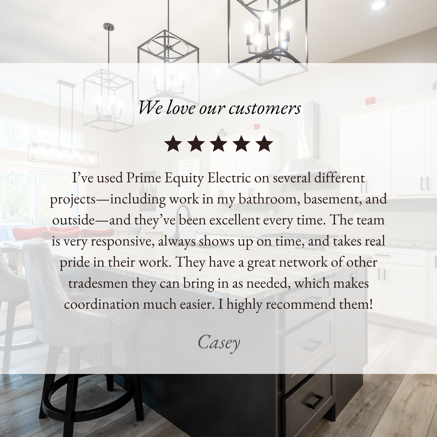 Is your home’s electrical panel keeping up with today’s power demands? Whether you're adding an EV charger, renovating, or just tired of tripping breakers, Prime Equity Electric provides expert panel upgrades to keep your home safe and powered efficiently. Our licensed Master Electrician will assess your current system and install a modern panel that meets today’s electrical codes and future-proofs your home.
